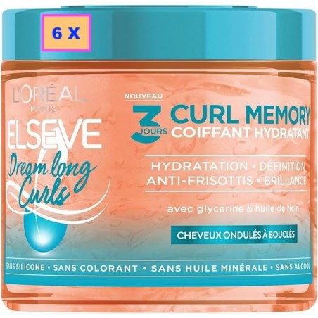 L'Oréal Paris - Gel Coiffant Hydratant 3 Jours Curl Memory pour Cheveux Bouclés (Packd de x6)